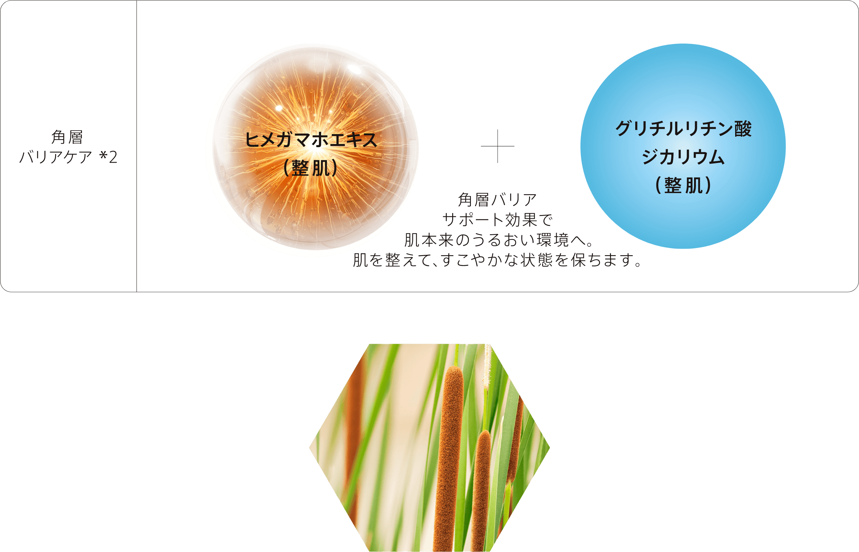 ヒメガマホエキス(整肌)を配合、 角層バリアをサポート